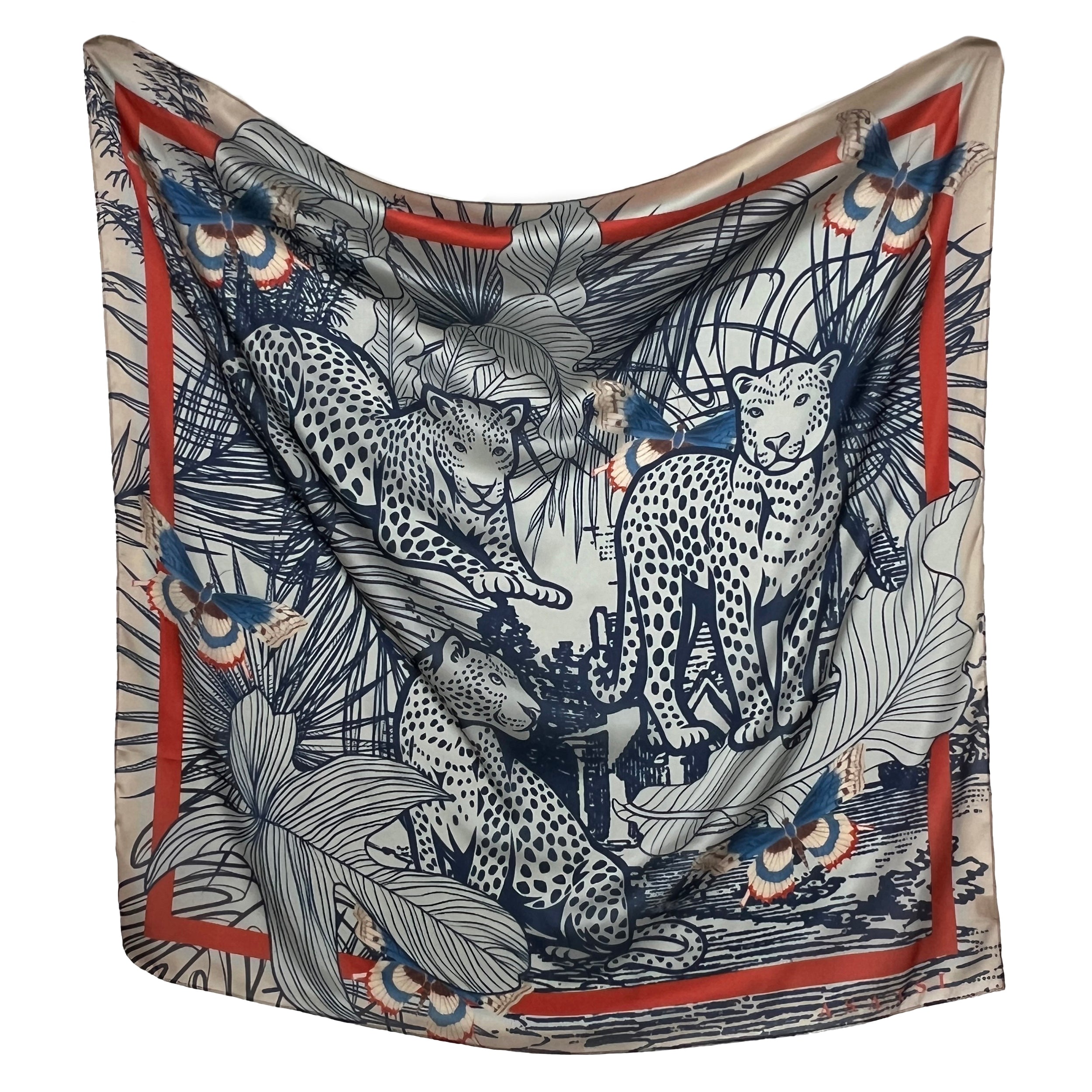 Hand-illustrated in our Johannesburg studio, this scarf captures the essence of South African nature and wildlife. Measuring 120cm X 120cm, this versatile scarf can be worn in a variety of styles and is perfect for any occasion.